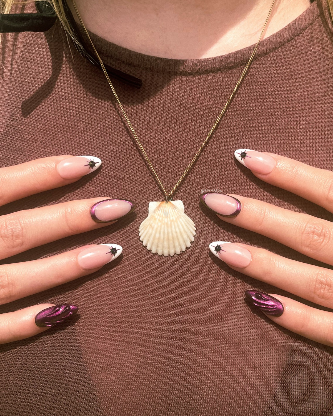 Electric Butterfly – Medium Almond Chrome & Cat Eye Press-On Nails | Handmade Gel Set